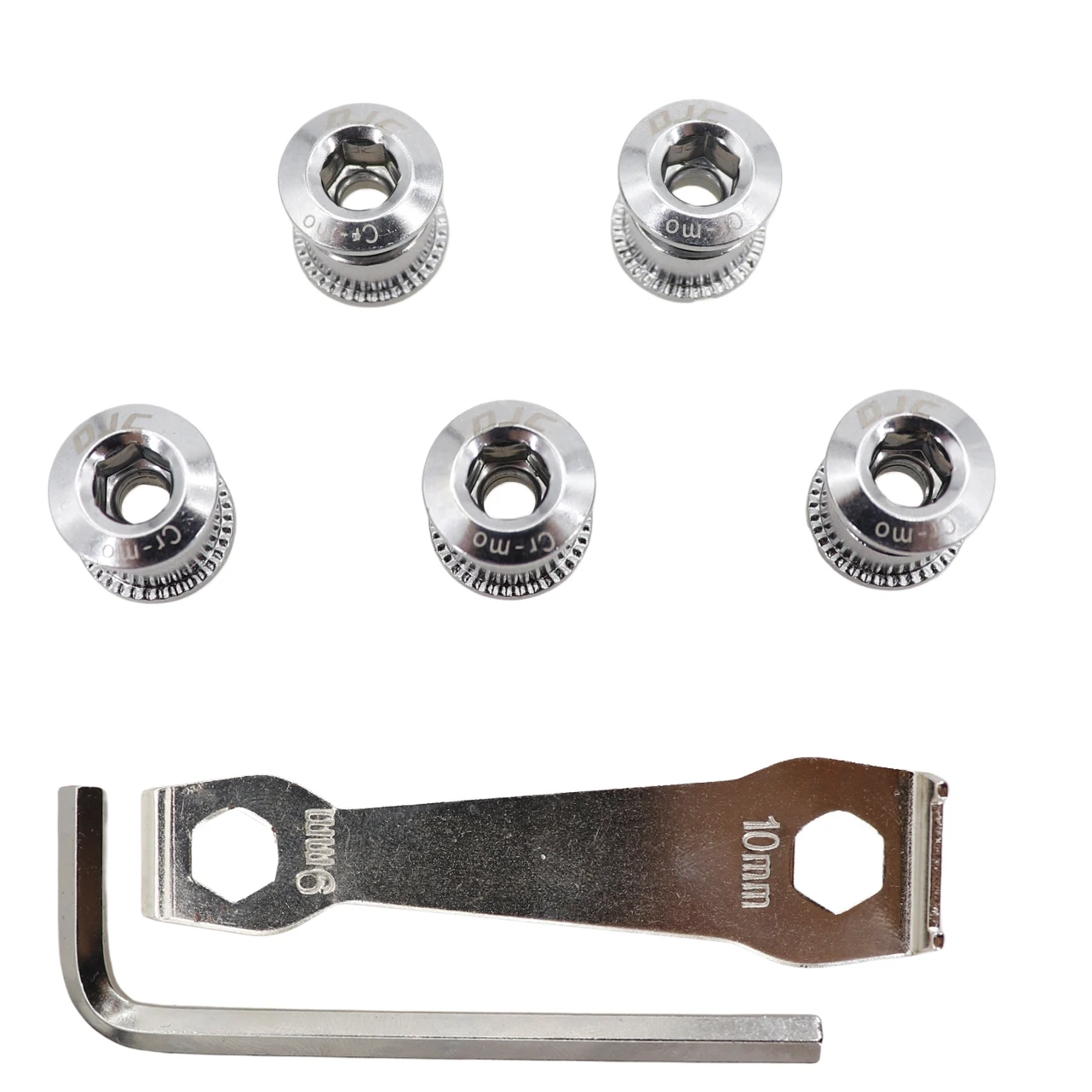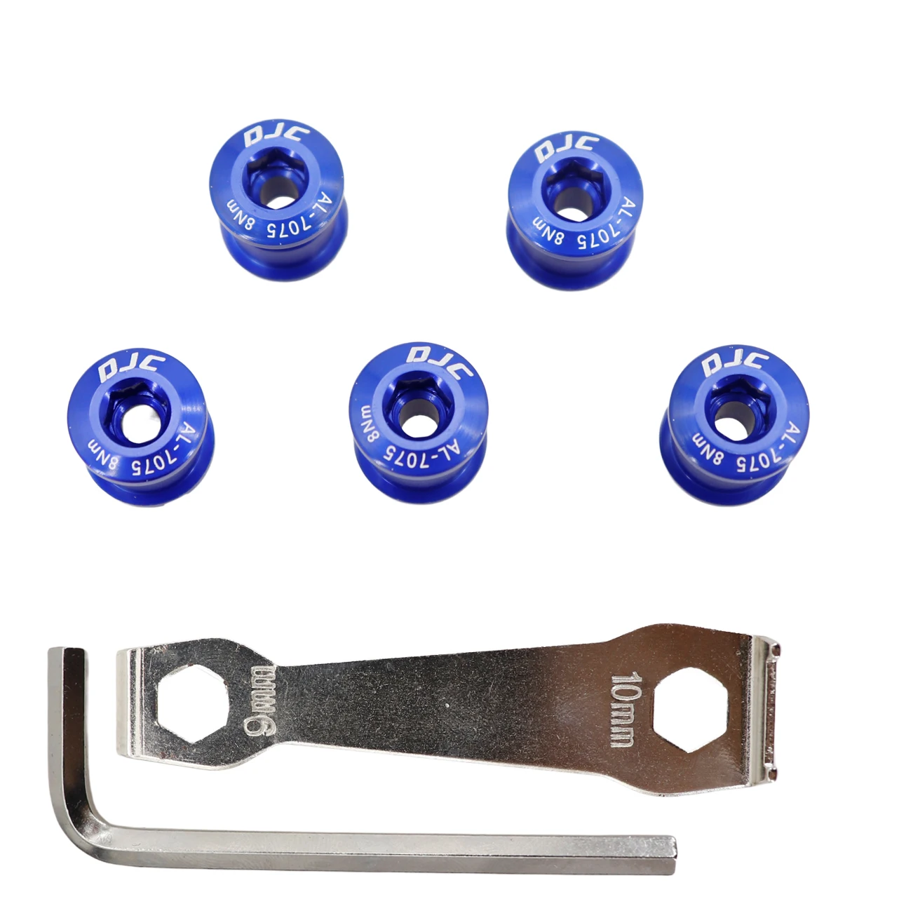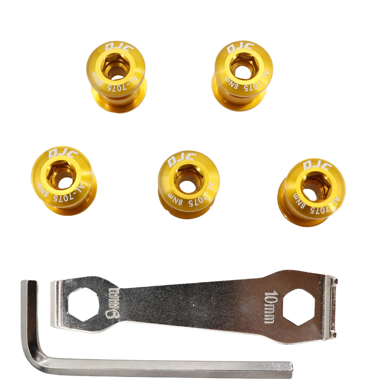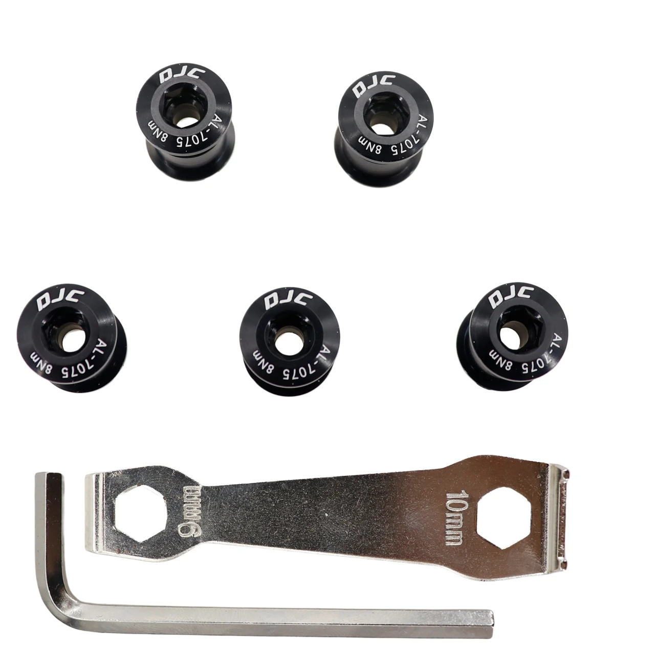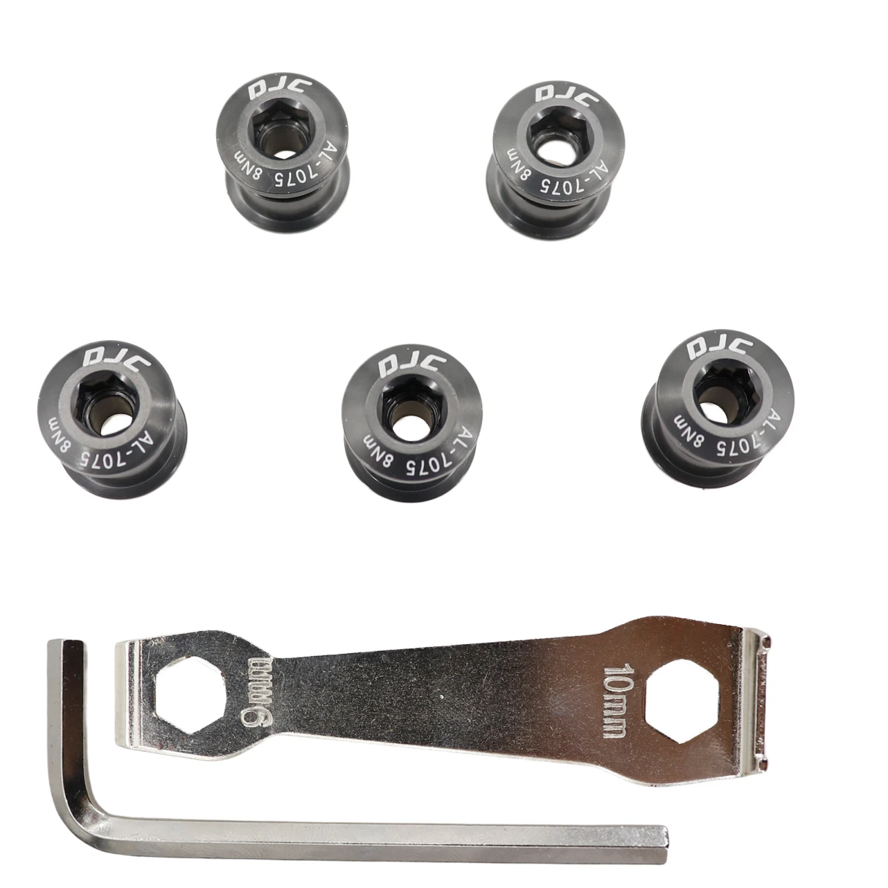 DJC bike chainring bolts 5pcs with 2 wrenchs aluminum or steel single chainring double chainring black red blue golden grey