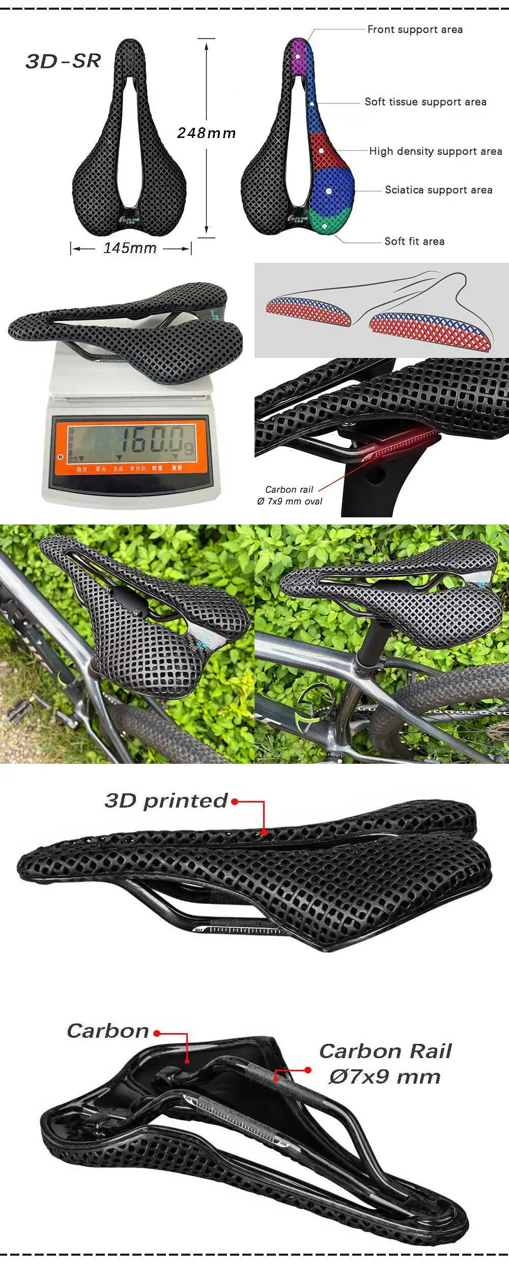Home > Bike Accessories > Bike Saddle > Elita One 3D Printed Bicycle Saddle 248x145mm Carbon Rail Road-Specific Saddles Differentiated Cushioning Areas Comfort 3D Print Saddle Elitaone