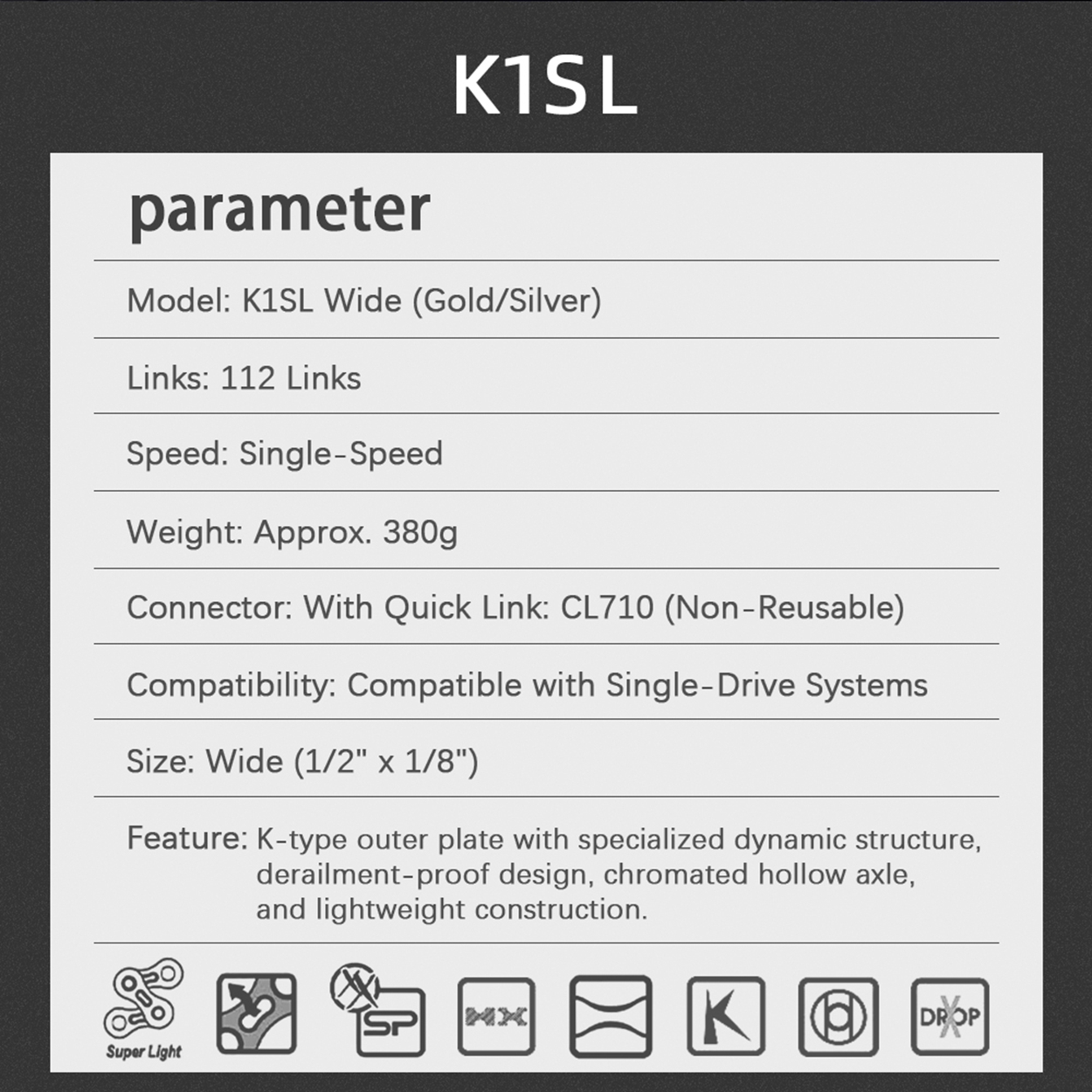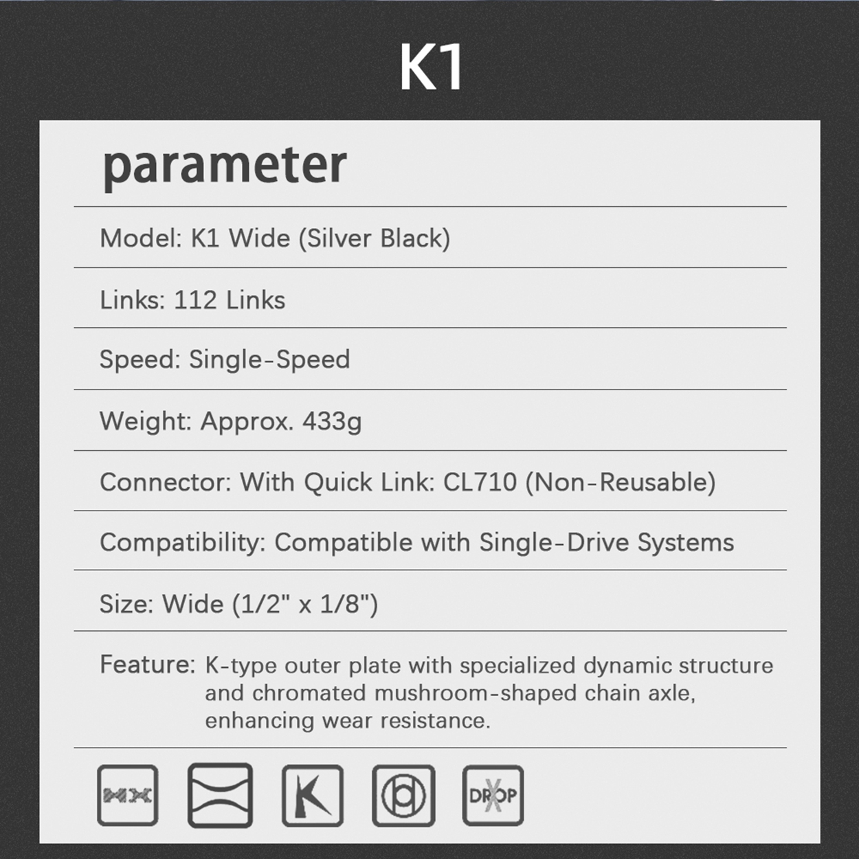 Home > Chainrings& Spiders& Power Meter > Fixie Chainrings > 110 130 135BCD Fixed Gear > KMC Single Speed Bicycle Chain S1 K1 K1SL Z1eHX HL1 BMX Series 1/2