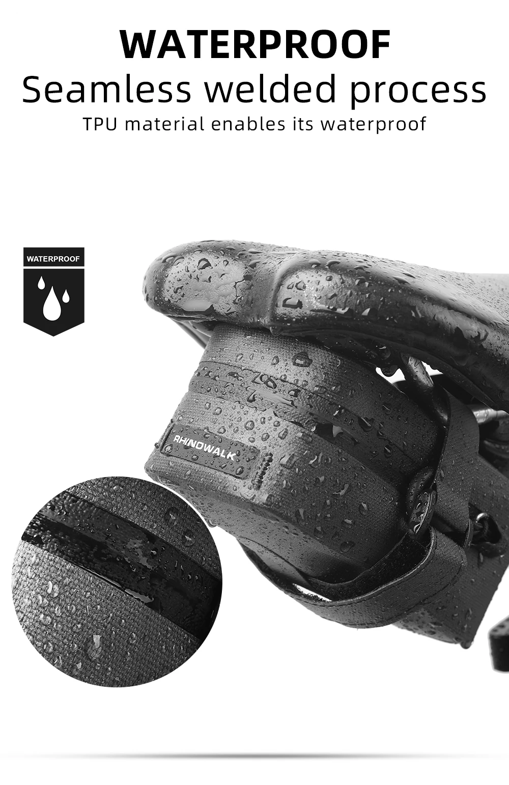 - Waterproof Material:Crafted from 600D Polyester TPU, this Rhinowalk saddle bag ensures your gear stays dry in any weather.