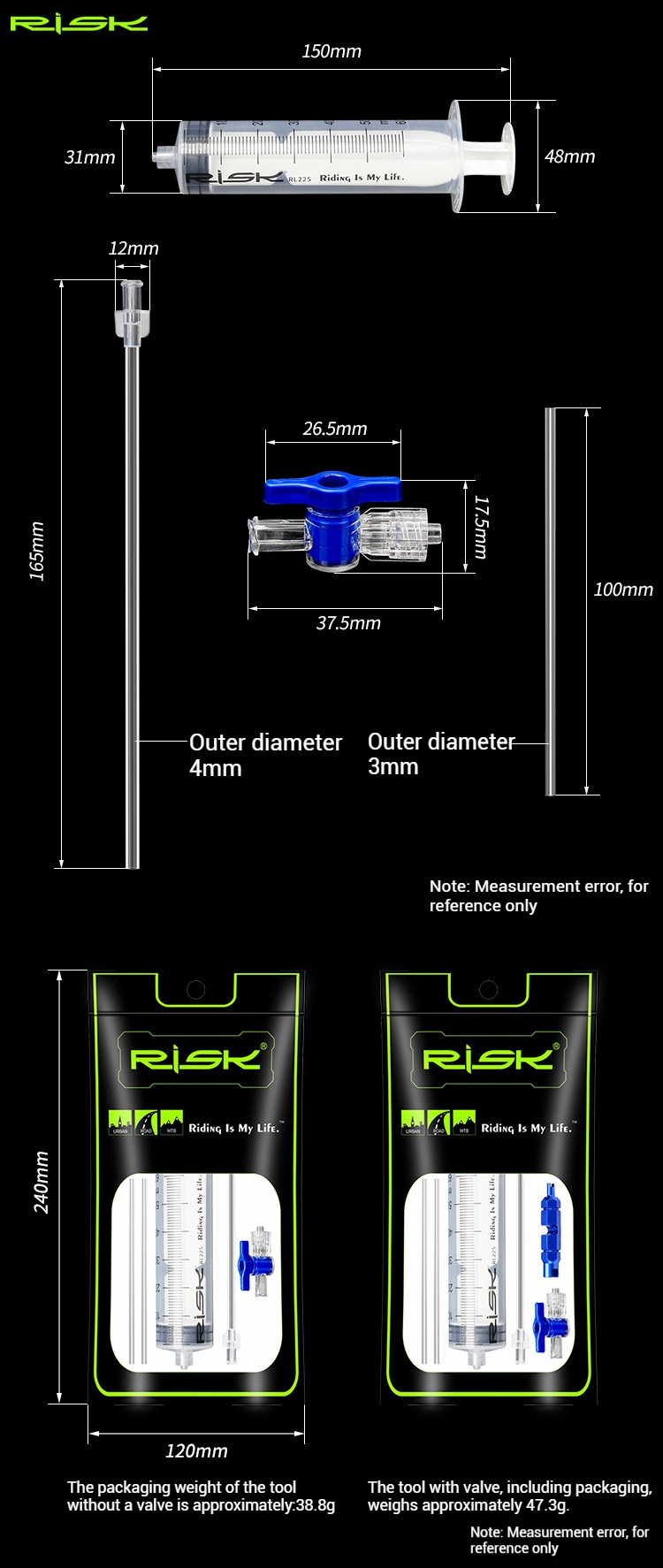 RISK Bicycle Tubeless Tire Sealant Injector Tool for Mountain Road Bike Tire Sealant Injection RL225 RL301