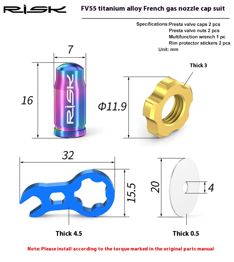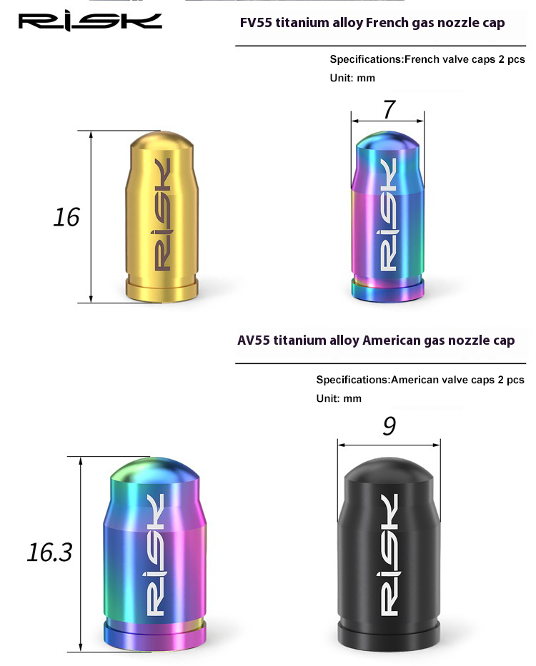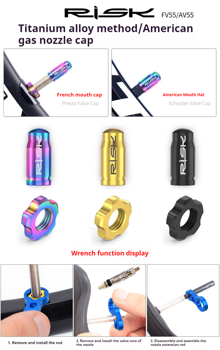 Home > Brand > RISK > RISK Bicycle Valve Caps Titanium Alloy Dustproof Valve Caps and Nuts for Mountain and Road Bikes Presta Nozzle Cap (FV55) / Schrader (AV55)