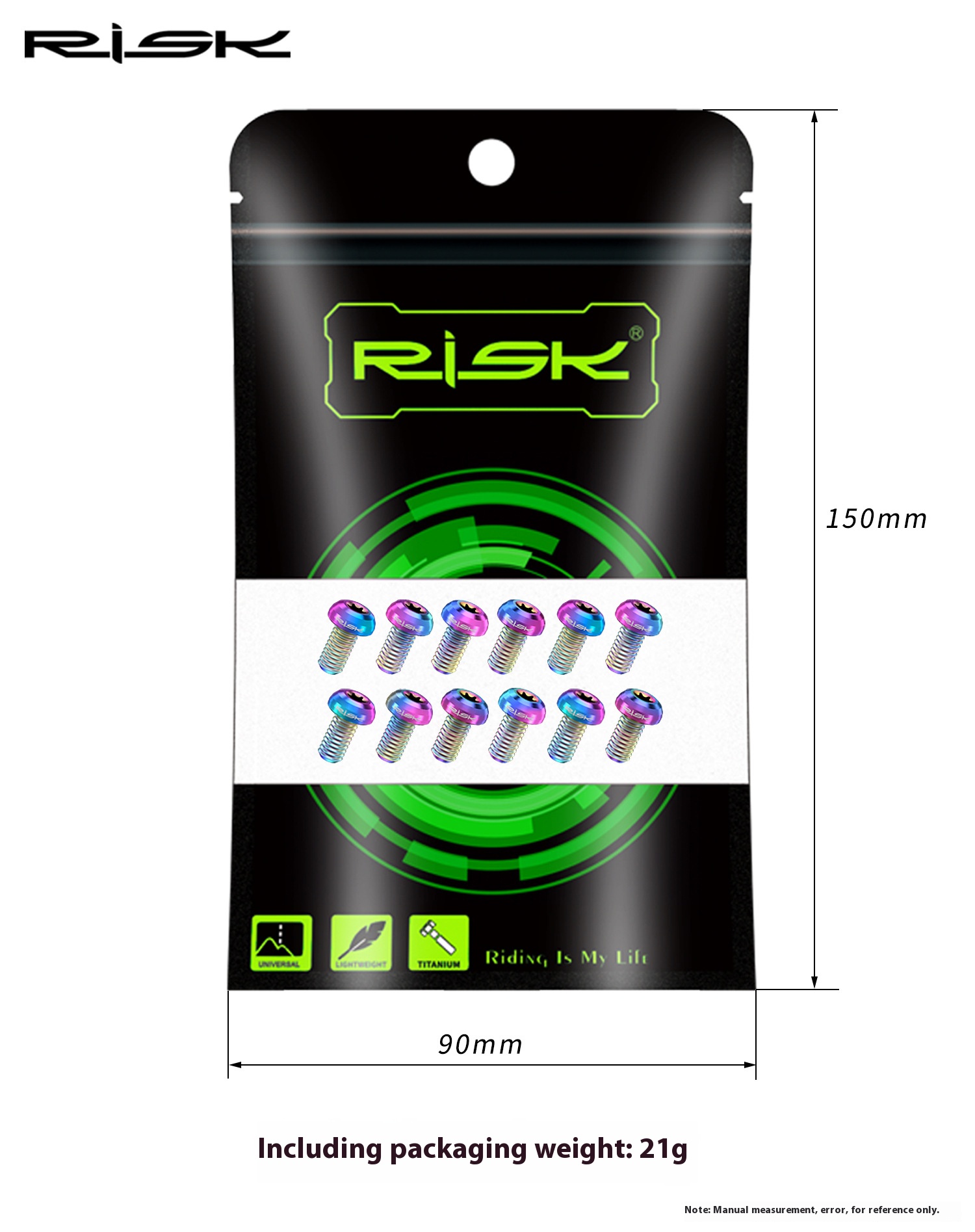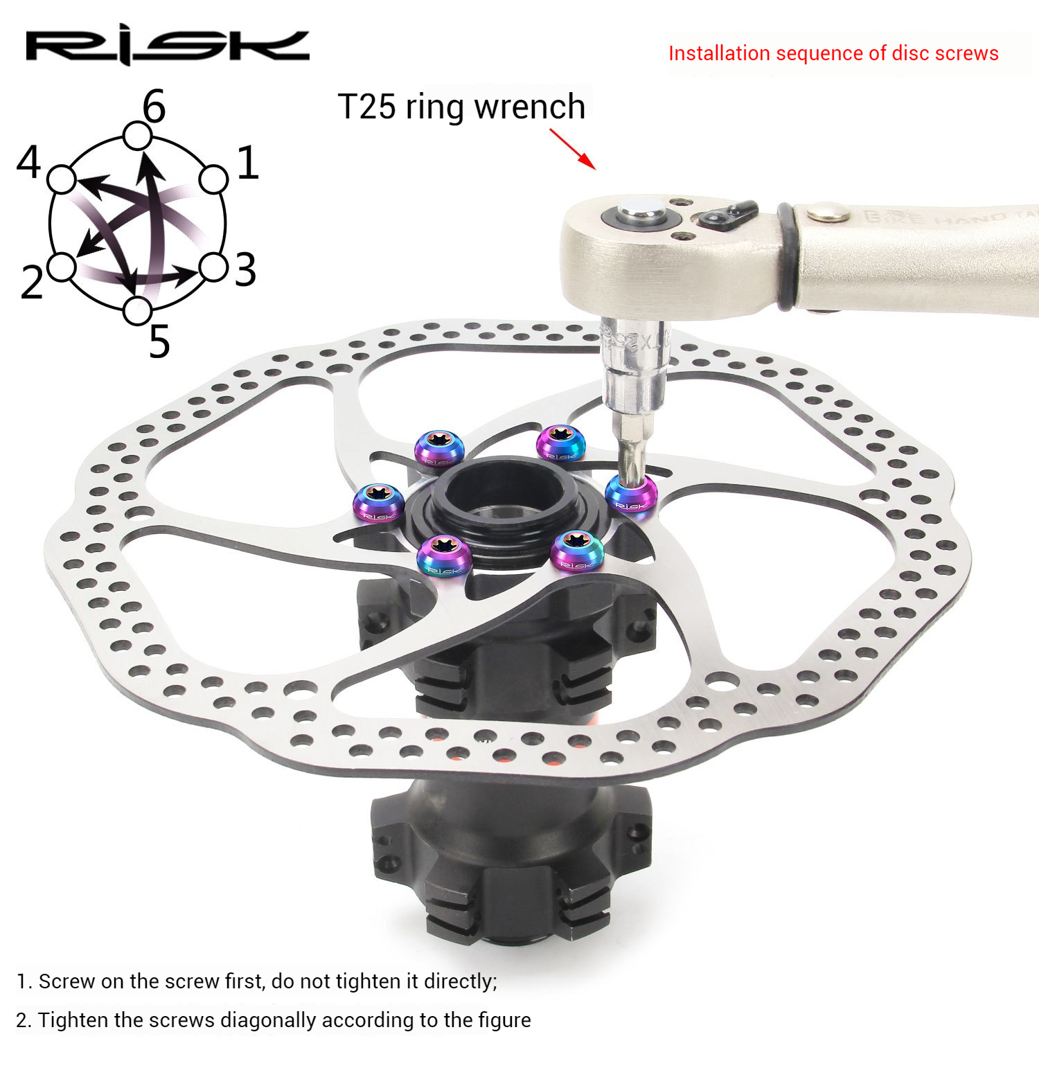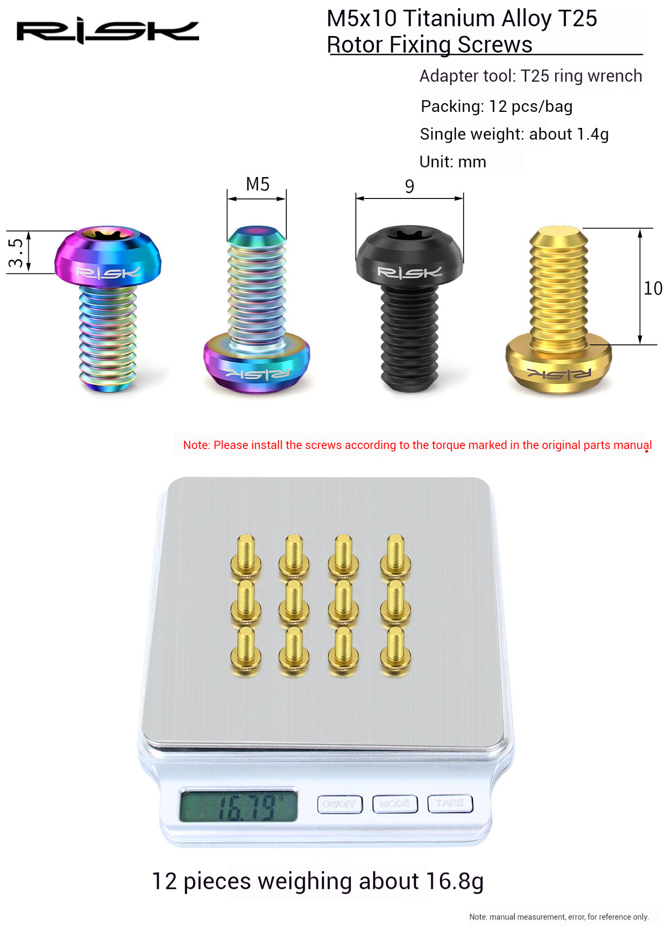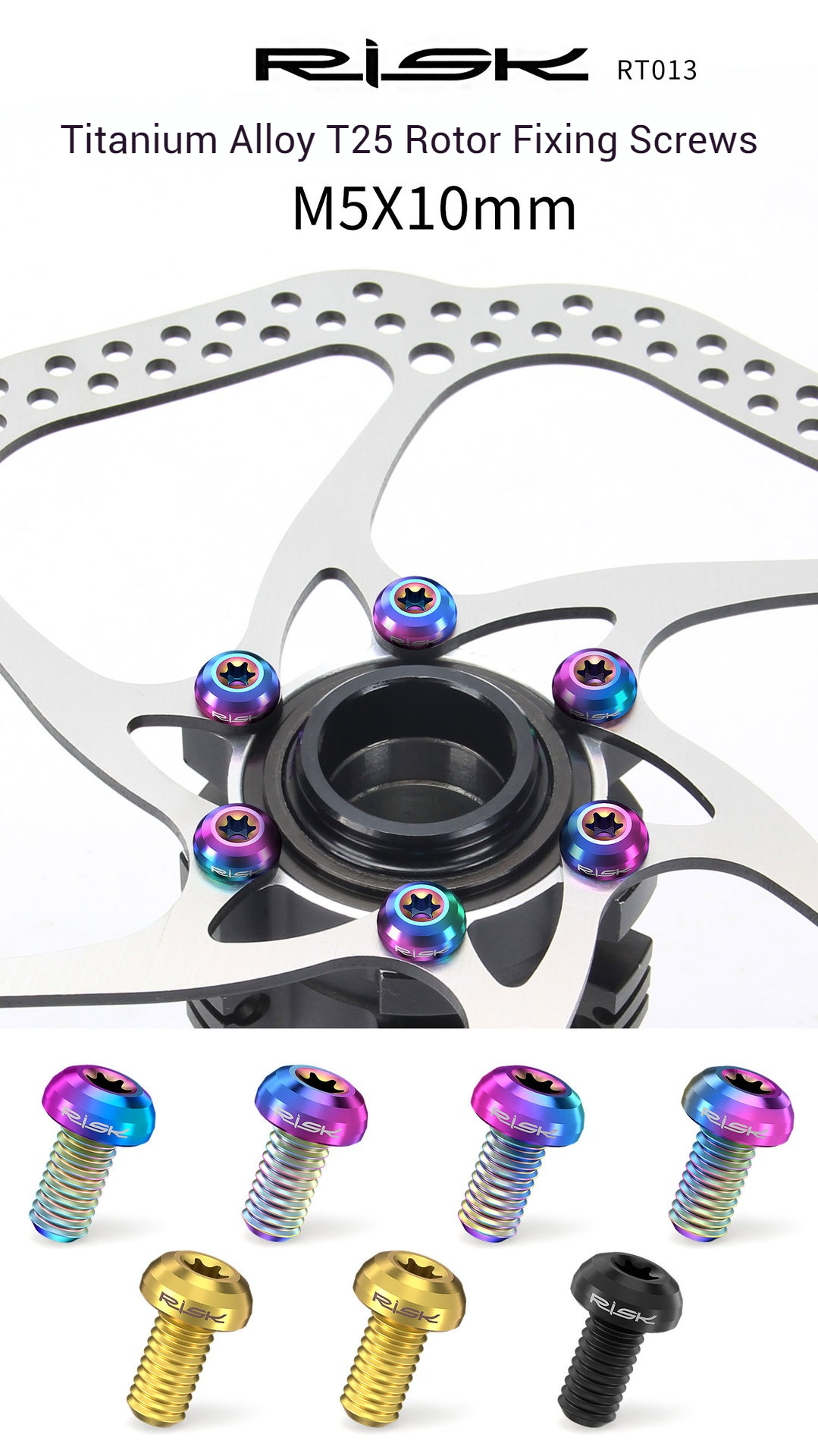 Home > Bike Brake and Rotor > RISK Mountain Bike Titanium Alloy T25 Rotor Screws M5x10 for Disc Brake Rotor Fixation RT103