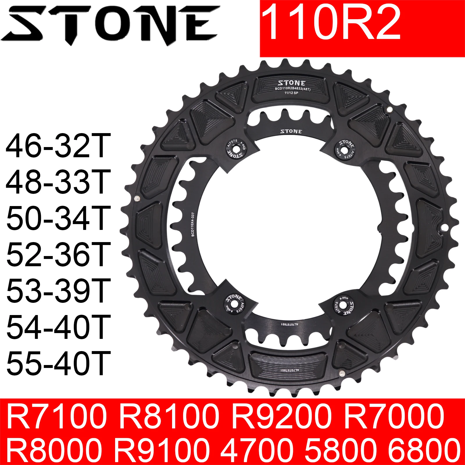 Stone 110bcd Round Double Chainring for Shimano 105 R7100 UT R8100 DA R9200 Road Bike 55 52 36T 53 39T 54 40T 50 34 48 46-32T