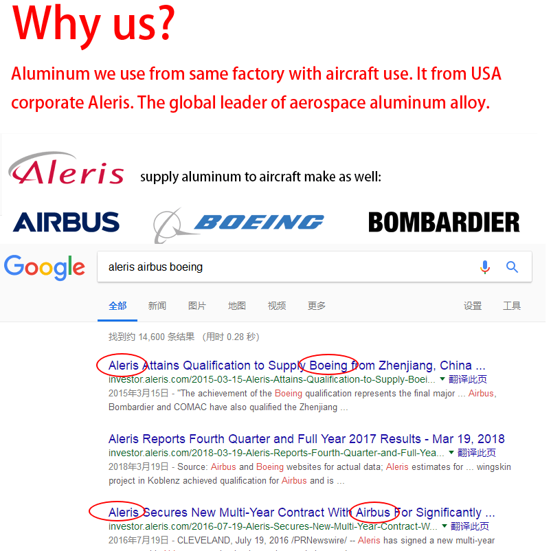 1 Material: High strength Aluminum 7075-T651, supplied by USA company Aleris. Offer best stiffness and endurance.