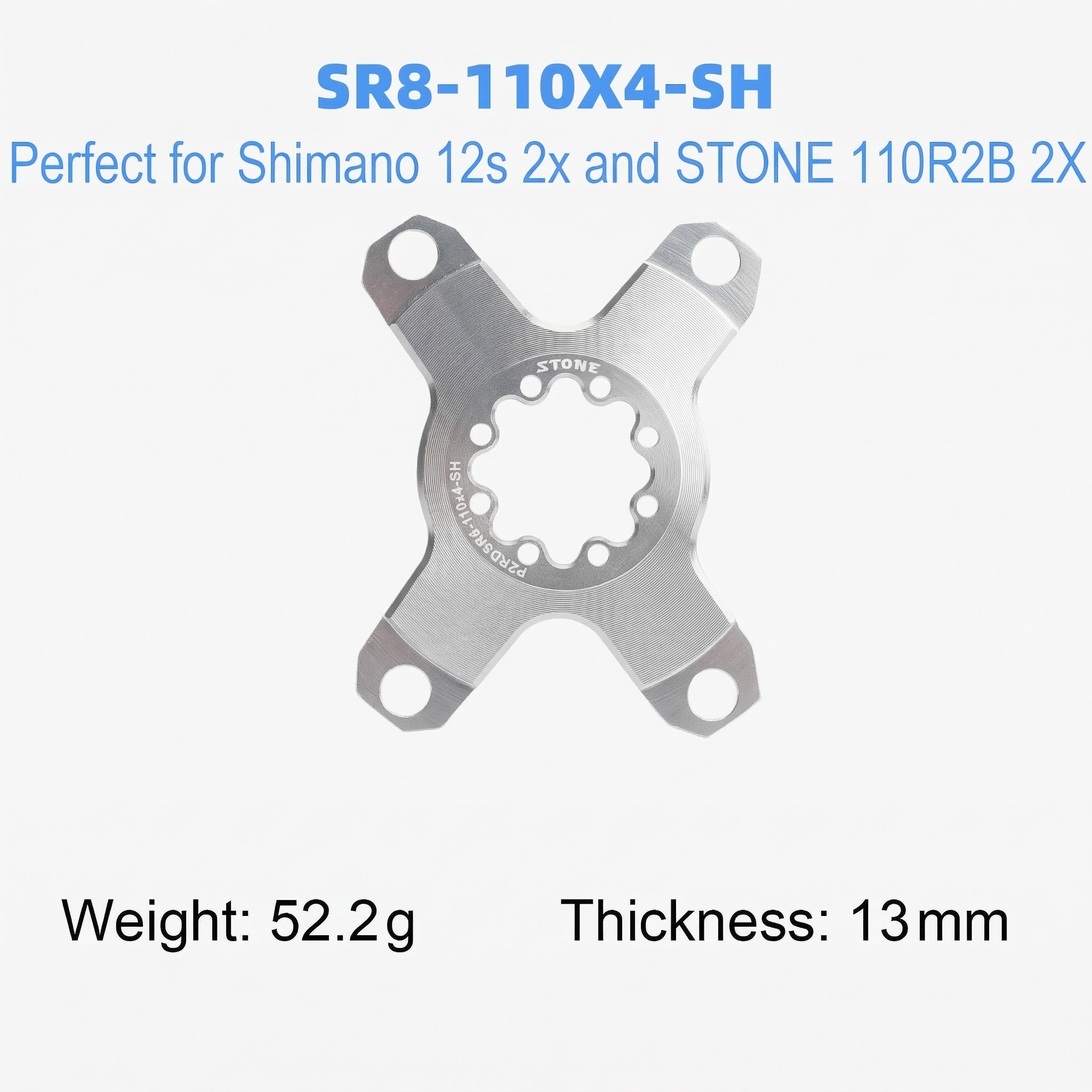 Those widen style spider is specific design for shimano 12s chainring curve as well as STONE 12s double chainring 110R2B curve. Make the chainring curve perfect when install those spiders.