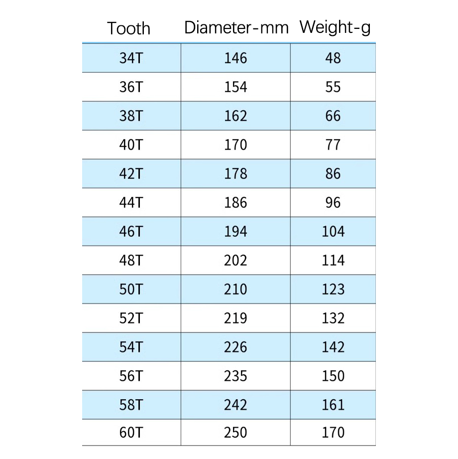 60T, 250mm, 170g
