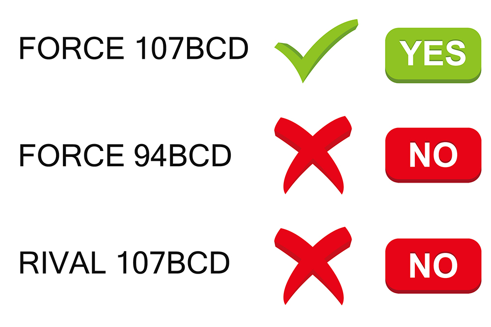 Size: 107BCD for FORCE 4 arms crankset only, not for other 107bcd crank