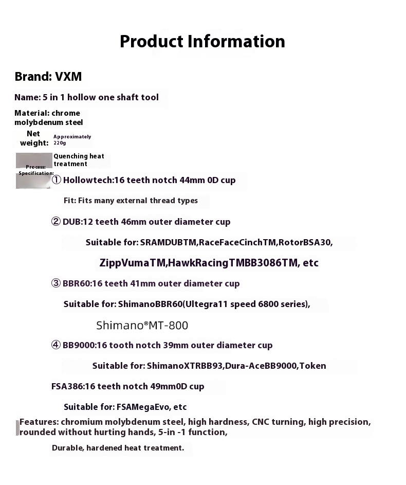 VXM Bicycle BB Integrated Bottom Bracket Removal Tool 44MM R60 BB-9100 DUB 16T FSA 386 Socket